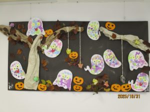 見ていただいたり、お給食では「おばけパン」のクッキングもしました👻