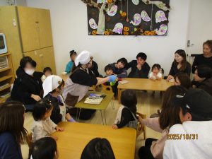 仮装の他にも、クラス懇談をしたりモンテッソーリの「おしごと」の様子を